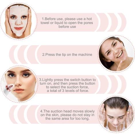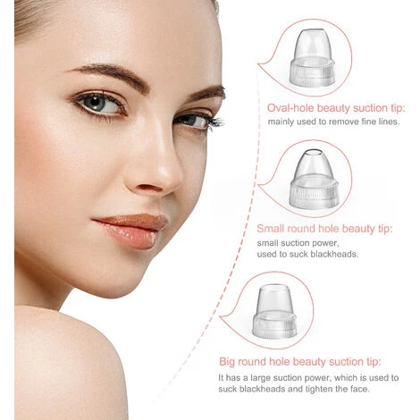 6 têtes d’aspiration: utiles pour nettoyer les points noirs, éliminer la saleté, éliminer les peaux mortes, favoriser la circulation sanguine, etc. Une autre tête peut être utilisée.