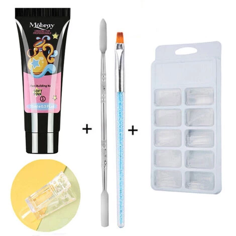 Le poly gel, les moules à ongles et d’autres outils sont utilisés pour l’extension des ongles pour une construction rapide. L’ensemble de manucure convient à un usage domestique ou en salon.