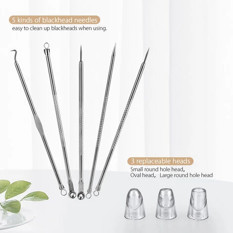 Comprenant 1 grosse tete a trou rond pour une forte aspiration, 1 petite tete a trou rond avec une aspiration douce pour la peau sensible, 1 tete a trou ovale pour une elimination amelioree des points noirs du nez.