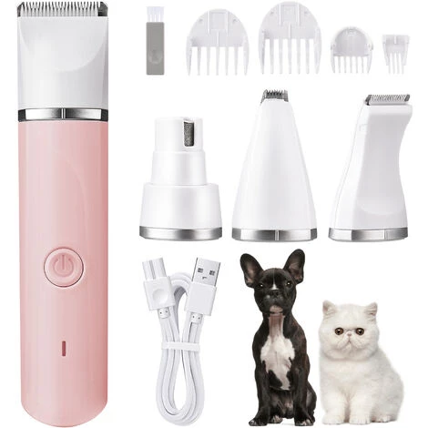 【Outil de toilettage pour animaux de compagnie avec 4 têtes de tondeuse】 La tondeuse à cheveux pour chien a 4 têtes détachables — 1 grande et 1 tête de coupe de taille moyenne pour une coupe rapide des poils du corps, des jambes et des oreilles des chiens de taille moyenne/petite, 1 tête de coupe de petite taille à enlever les poils d’animaux des pattes et d’autres zones plus difficiles à toiletter, et la tête de broyeur à ongles offre un broyage des griffes sûr et confortable à vos animaux de compagnie.