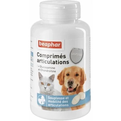 Ces comprimés maintiennent en bonne santé le systeme articulaire de votre animal – Ils contiennent une quantité importante de Glucosamine, Chondroitine et de vitamine E, qui participent a la reconstruction du cartilage et redonnent de la souplesse et de la mobilité aux articulations – Pour chien et chat.
