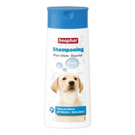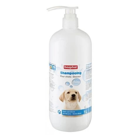 Ce shampooing est spécialement adapté aux chiots et rend leur pelage doux et facile à brosser.