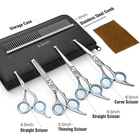 Les ciseaux courbés sont conçus pour les courbures vers le haut et vers le bas. Cette conception garantit un risque minimum pour les zones sensibles de vos animaux de compagnie telles que les cils, le nez, le visage, les oreilles, le ventre, les hanches, etc.