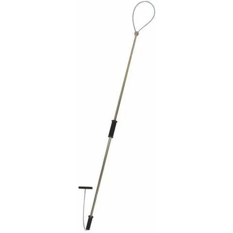 Lasso tout inox muni de deux poignées en caoutchouc antidérapant et d’une poignée en acier pour la tension du câble.