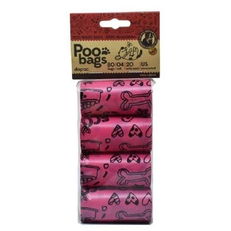 Sacs d’hygiaque pour collecter les dEchets de chiens. Le pack comprend 4 rouleaux de 20 sachets recyclables chacun. Format: 1 vous.