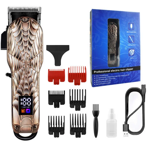Accessoires : + hôte + 1 câble USB + 1 couvre tête de coupe + 6 peignes limite ((1.5/3/4.5/6/10/13mm) + 1 brosse + 1 bouteille d’huile