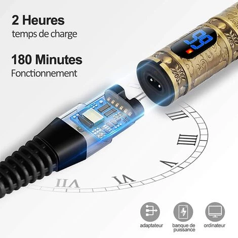 Charge rapide et grande capacité : il ne faut que 2 heures pour charger complètement l’USB et il peut être utilisé pendant 180 minutes lorsqu’il est complètement chargé. L’écran LED peut clairement afficher la puissance restante, alors ne vous inquiétez pas de ne pas savoir que la puissance est épuisée.