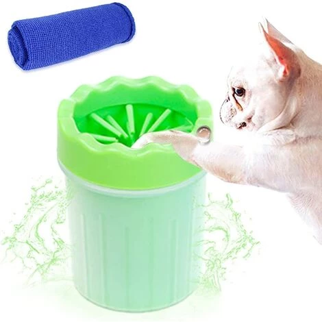 qui est la taille idéale pour la plupart des nettoyeurs de pattes de chien. Il convient très bien aux chiens de petite et moyenne taille tels que les labradors, les bergers, les chihuahuas, les carlins, etc. Il convient également aux chats. Le nettoyeur de pattes de chien mesure 9,5 cm et le diamètre de la base 8 cm, hauteur : 15 cm.