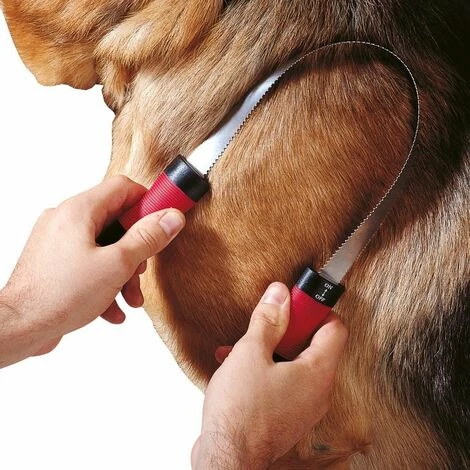 GRO 5954 est un peigne étrille, idéal pour les chiens à poil court, avec une longue poignée pour une prise sûre, double tranchant avec dents en acier inoxydable. Vous pouvez l’utiliser ouvert ou fermé. Il est idéal pour enlever les poils morts et les excès d’eau après le bain.