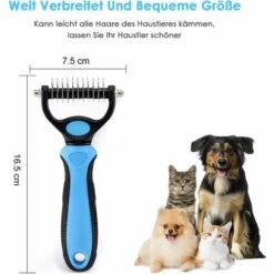 - CONCEPTION DOUBLE FACE: Un côté des 9 dents de peigne de la brosse pour animaux de compagnie est utilisé comme râteau démêlant pour les enchevêtrements et les enchevêtrements tenaces. 17 Le côté de la dent du peigne sert de râteau de sous-poil, permettant des résultats plus rapides pour l’amincissement et l’épilation. Le peigne double face aide à éliminer l’excès de poils et à résoudre les problèmes d’enchevêtrement tenaces.