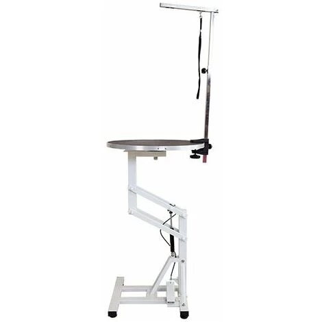 Table ronde hydraulique à hauteur réglable pour les chiens de petite race.