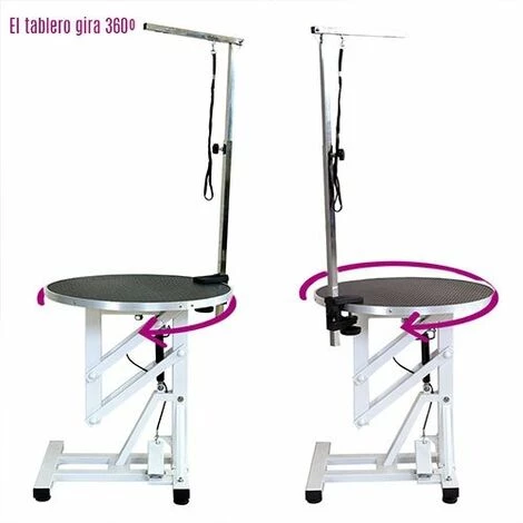 Ce tableau est perfecta pour prendre des dispositions pour les petits chiens. Son plateau rotatif peut tourner 360˚, ce qui permet d’avoir une vue complète de l’animal et de l’évolution de la coupe, sans avoir à tourner autour de la table ou à déplacer le chien constamment.