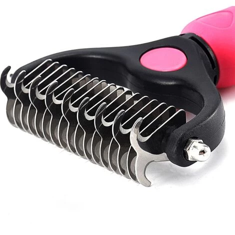 - MATÉRIAU EXCELLENT: Ce peigne pour chien est fabriqué en matériau TPR respectueux de l’environnement. 17 + 9 dents en acier inoxydable robuste et les côtés de la poignée sont en caoutchouc souple, pas facile à glisser lors de l’utilisation de ce peigne pour animaux de compagnie.