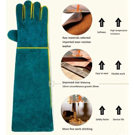 Le protecteur de couture de l’ensemble du gant est de 95%, ce qui empêche les animaux de mordre et provoque la rupture du fil et augmente la durabilité globale.Matières premières sélectionnées Cuir résistant à l’usure importé