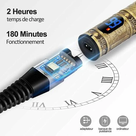 Conception intelligente Écran d’affichage à LED: Tondeuse à cheveux professionnelle avec écran LED qui peut afficher la durée de vie de la batterie et voir clairement quand elle doit être chargée, facile à utiliser.Charge rapide et grande capacité: Il ne prend que 2 heures pour se recharger complètement avec USB, et il peut être utilisé pendant 180 minutes lorsqu’il est complètement chargé. L’écran LED peut afficher clairement la puissance restante, vous n’avez donc pas à vous soucier de l’épuisement de la puissance si vous ne le savez pas.Moteur puissant: le moteur puissant peut s’adapter à toutes sortes de cheveux sans être accroché ou tiré, ce qui rend les coupes de cheveux plus pratiques et simples.Lame 0.1mm T silencieuse et étanche: la tondeuse cheveux et barbe homme offre une machine électrique à grande vitesse, des performances puissantes et un moteur à faible bruit. La tête de coupe est étanche, vous pouvez la nettoyer à l’eau courante rapidement, pensez à nettoyer la brostyle tondeuse professionnelle après chaque utilisation pour la garder propre.Design unique: Tondeuse cheveux hommes vintage,la nouvelle apparence apporte une expérience unique. La poignée ergonomique garantit que le fader est confortable à tenir et facile à contrôler pendant l’utilisation.Ce cadeau pour homme sera le meilleur choix pour fête des mères, la fête des pères, Noël, le nouvel an et les anniversaires.Aussi le meilleur de la idee cadeau homme.Afficheur LEDLa tondeuse barbe dispose d’un afficheur LED,qui indiquant précisément la charge restante.Pas besoin de s’inquiéter des problèmes causés par une batterie insuffisante.Précise et Caresse PeauLa tondeuse barbe homme,la lame tranchante offrent une précision haute performance.Coupe bien sans abîmé la peau.Rapide Charge USBCharge rapide en 2 heures,garantissant 180 minutes de temps de travail,prise USB,plusieurs façons de charger,plus pratique,plus adapté à votre voyagesMoteur PuissantLe moteur professionnel 7000 tr / min,qui peut réaliser une coupe de cheveux rapide et précise.Lisse et propre.Facile à NettoyerLame en acier pur de haute qualité,être directement rincée à l’eau courante,et peut être huilée pour l’entretien après séchage.Faible BruitConception à faible bruit,avec un bruit relativement faible.Offrez à votre famille une expérience de coupe de cheveux calme et confortable.Meilleurs Cadeaux HommesCette tondeuse de finition professionnelle est le meilleur cadeau pour hommes pour anniversaire, anniversaire de mariage, Noël, fête des pères,fête.