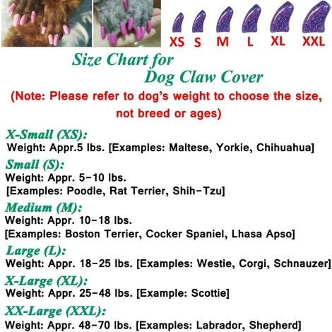 - ?Matériel de sécurité?Uniquement pour les chiens. les couvre-griffes de chien sont fabriqués à partir de résine de vinyle naturelle, non toxique. Les colles sont sûres et spécialement utilisées pour les capuchons d’ongles pour animaux de compagnie.