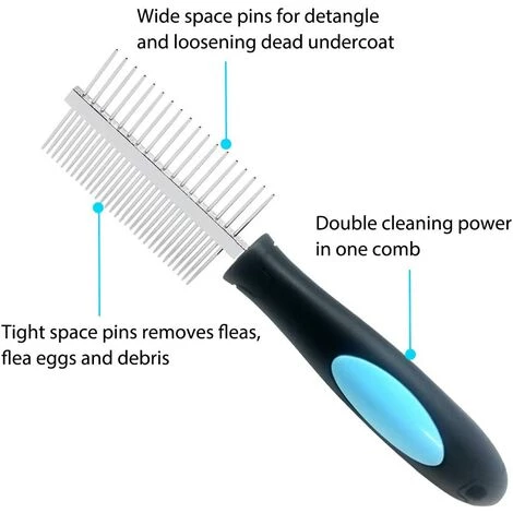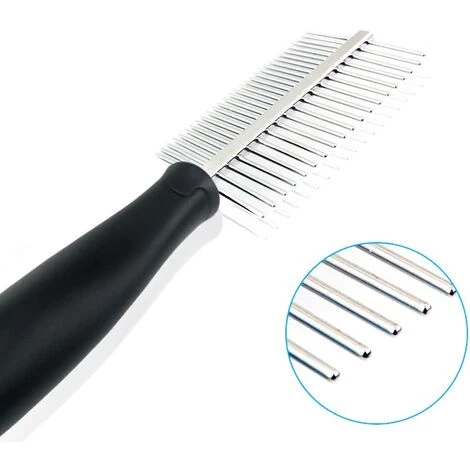 - ?Peignes aux Puces à Double Face–Peignes à puces double face pour les chiens et les chats se compose d’un côté mince et un côté large. Il vous suffit d’acheter un peigne au lieu de deux. Plus de changements pénibles lors du peignage. Le peignage s’effectue donc plus vite – et vous gagnez également de la place dans vos tiroirs grâce à la combinaison 2 en 1.