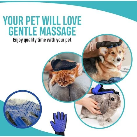 Votre animal de compagnie va adorer un massage doux : le massage régulier améliore la circulation sanguine, stimule la croissance des poils et des poils sains, et aide votre animal à se sentir plus calme et détendu. Le gant de toilettage peut être utilisé humide ou sec, pour le toilettage, le massage ou le bain de votre animal de compagnie.Matériau sûr non toxique du gant de toilettage pour animaux de compagnie n’irrite pas la peau et il est adapté pour les chats, les chiens, les chevaux, les lapins et autres animaux, aux poils courts ou longs.