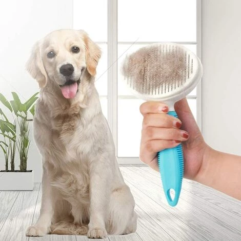Facile À Nettoyer: Avec le bouton à la conception rétractable, la brosse rétractable pour chien est facile à récupérer les poils morts après le toilettage, réduit efficacement les temps de nettoyage des animaux.
