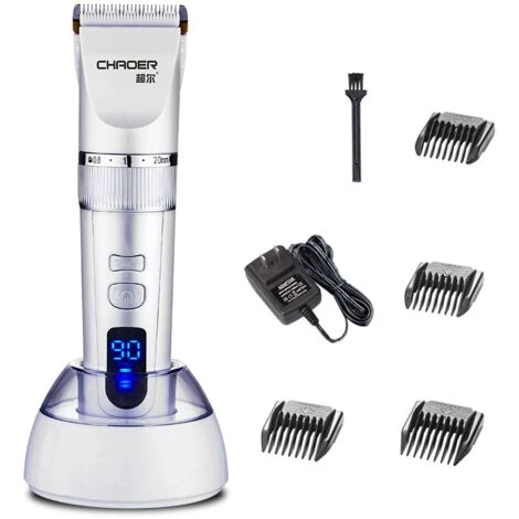 Kit de toilettage professionnel pour chien : cet ensemble de tondeuse pour chien est livré avec tous les accessoires pour un toilettage efficace : 1 tondeuse pour animaux de compagnie, 4 peignes (3-6-9-12 mm), 1 kit de nettoyage de brosse, 1 base de chargement, 1 manuel d’utilisation.