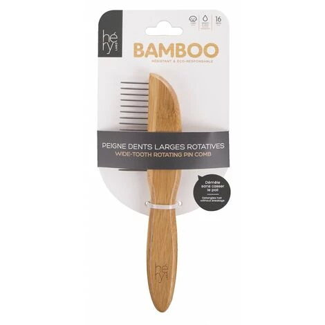 PEIGNE BAMBOU DENTS LARGES ROTATIVES