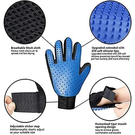 Gant de toilettage pour chiens, chats et lapins. Brosse douce et massante pour l’élimination des poils d’animaux domestiques. Effet relaxant.