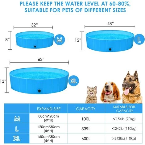 【Facile à utiliser et à ranger】Dépliez simplement la piscine pour chien, ajoutez de l’eau, puis profitez-en! L’eau peut être rapidement drainée par le trou de drainage intégré. Pliez la piscine et emportez-la partout avec le sac inclus!