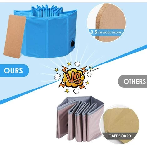【Matériau de Haute Qualité】 La piscine pour chien est faite de PVC et wood écologique, 100% sûr et non toxique. En comparant avec le carton 0,2 cm des autres, notre tableau est un panneau WOOD plus épais, ce qui rend la piscine plus solide et ne s’effondre pas facilement. Une piscine parfaite pour vos chiens et vos enfants.