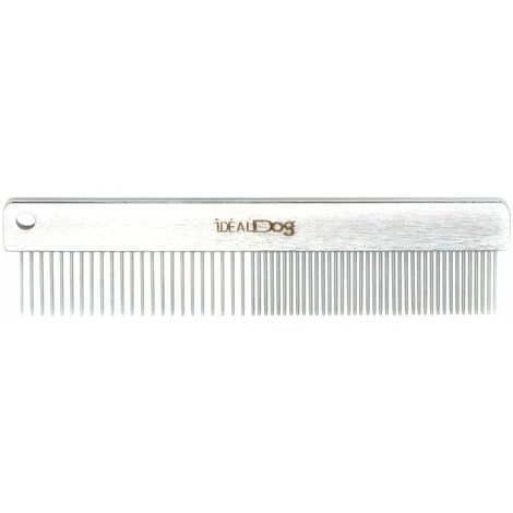 Peigne double en acier carbon IdealDog d’une longueur de 16 cm et des picots de 2.2 cm. Ce peigne que nous propose IdealDog est idéal pour démêler les fourrures et lisser le pelage. Grâce à ses dents plus resserés, cela permet de peigner les oreilles ou la frange de votre animal. La longueur du peigne est de 16 cm et les picots sont de 2.2cm. Ce peigne double acier est ideal pour tous les types de poil.