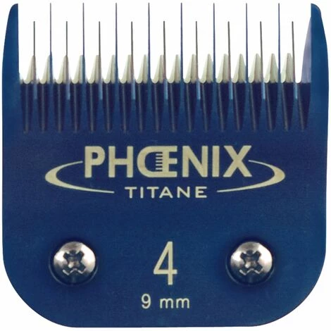 Tête de coupe Phoenix Universal en céramique et titanium, les rendants inusables et non chauffantes.Tête de coupe N°4 (9mm) compatible avec les tondeuses clip system.Hauteur de coupe : 9 mm Tête de coupe Phoenix Universal N°4 gamme « Titane Céramique », Tête de coupe en céramique et titanium, ces têtes de coupe ne chauffe pas et sont inusables, Pour tondeuses utilisant le « Clip System », Hauteur de coupe 9mm, Haute qualité, Compatible avec les tondeuses Oster, Moser, Heininger, Andis et Walh et autres marques utilisant le clip system, Pensez à lubrifier régulièrement votre tête de coupe (avant et après utilisation). Type de tonte : dos-corps-pattes-queue (Westie, Scottish, Cocker Americain,Yorkshire…).