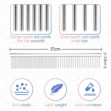 ★ Traitement fin avec des matériaux de haute qualité : le peigne est fabriqué en acier inoxydable de haute qualité, lisse, durable, résistant à la corrosion et inaltérable. La qualité est assez bonne pour être réutilisée pendant des années. Le processus antistatique spécial empêche la perte de cheveux et les enchevêtrements, rendant les poils d’animaux plus doux.