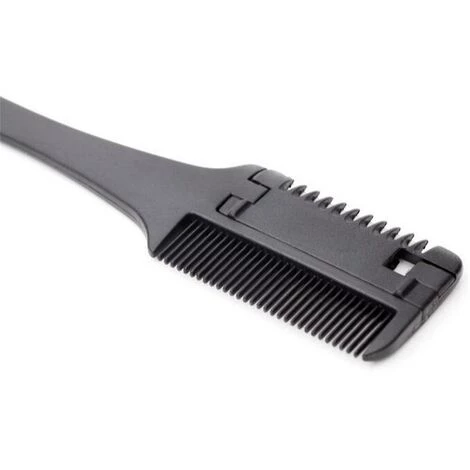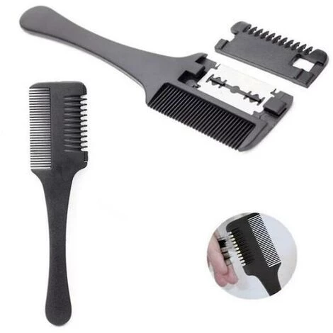 Spécification :Nom : Peigne de coupe de cheveux, brosse à cheveux avec lames de rasoirQuantité : Peigne de coupe de cheveux 1 pièceCouleur: Matériau noir : Plastique de qualitéTaille : 19 x 4,5 cm Caractéristique ; Fonction : 1 coupe de cheveux 2 coupes de cheveux 3 brosses à cheveux 4 lames tranchantes, peuvent être remplacées Liste de colisage : 1 * peigne de coupe