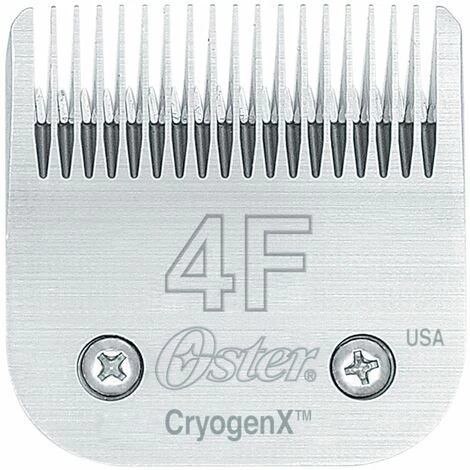 Tête de coupe Oster Cryogenx N°4F.Pour tondeuses Golden A5, Power Pro et modèles compatibles. Hauteur de coupe 9.5mm – Clip System. Comment obtenir un résultat de coupe professionnelle pour votre chien ? Choisissez la tête de coupe Oster Cryogenx N°4F. Compatible avec les tondeuses Golden A5, Power Pro et autres modèles compatibles, cette tête de coupe de qualité professionnelle vous permettra de couper les poils de votre animal avec précision et facilité. Pratique, maniable, cette tête de coupe résistante et précise sera un vrai plus pour le toilettage de votre compagnon à quatre pattes. Conseils d’utilisation : Les peignes en acier inoxydable sont spécialement conçus pour la Golden A5 et la Power Pro. Ils peuvent également convenir sur certaines tondeuses Andis, Moser et Wahl.