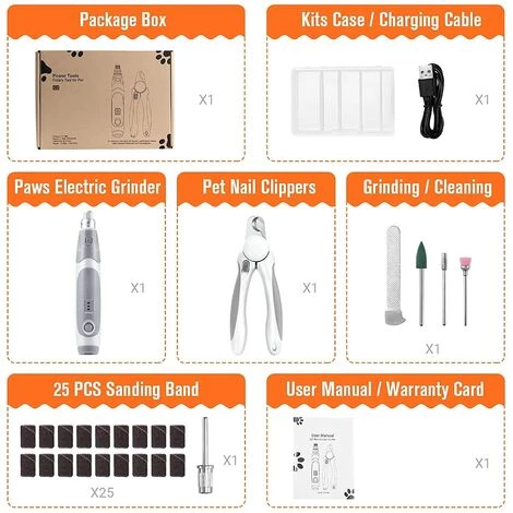 Entretien Facile des Ongles: L’ensemble de soins des ongles pour animaux de compagnie comprend un broyeur à ongles et un coupe-ongles, peut répondre à tous les besoins de soin des ongles de votre animal.
