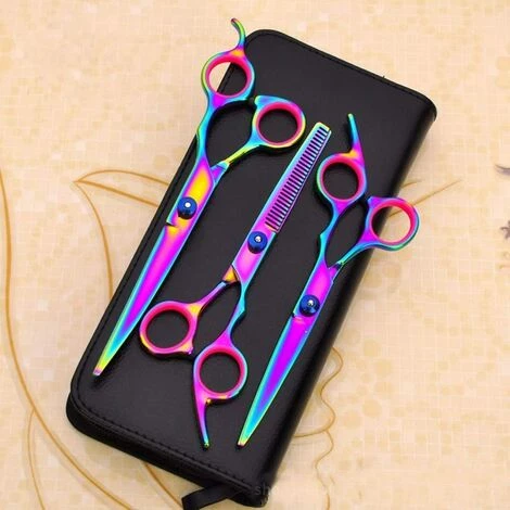 Matriaux de haute qualit les ciseaux de toilettage pour animaux de compagnie en acier inoxydable de haute qualit suprieure. Durable, excellente prcision, aiguis et solide ( La couleur arc-en-ciel belle et cool plaque sur les ciseaux, ne s’estompe jamais! ) .