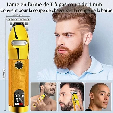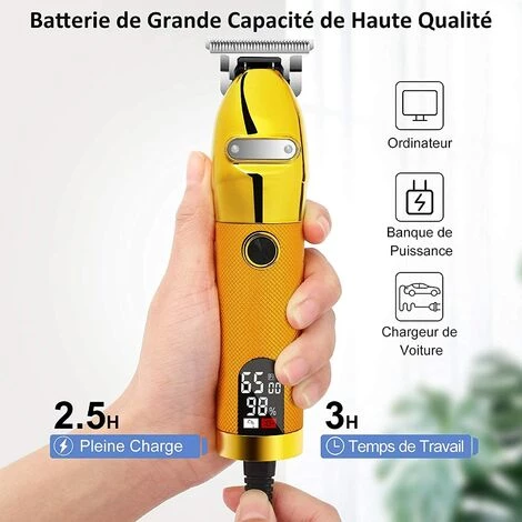 Batterie de Grande Capacit Durable et Rechargeable Rapide- La conception de charge est plus pratique. La batterie rechargeable puissante et durable peut tre rapidement charge pendant 2,5 heures et peut tre utilise jusqu’ 180 minutes, ce qui quivaut 6 mois avec une seule charge (si vous utilisez la tondeuse cheveux pendant 30 minutes chaque mois).Tondeuse barbe et cheveux professionnelle peut galement tre utilise pour couper la barbe et le corps. .