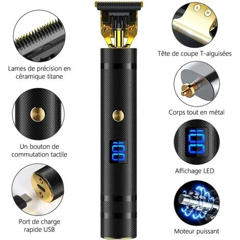 Design LED unique Tondeuse cheveux professionnelle avec cran LED peut afficher clairement la puissance restante, et voir clairement quand elle doit tre charge, la poigne ergonomique garantit que le fader est confortable tenir et facile contrler pendant l’utilisation.Le tondeuse de finition est conception entirement lavable pour un nettoyage facile. .