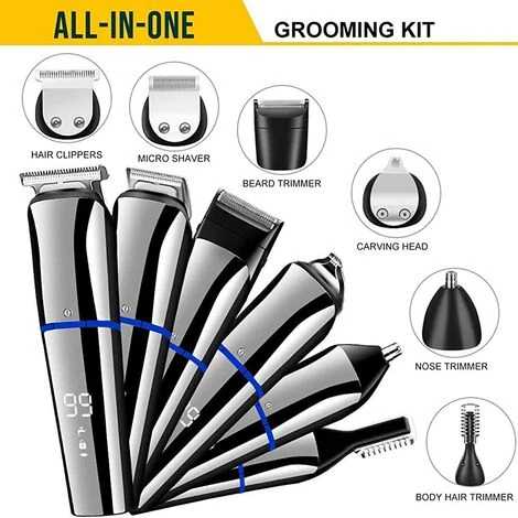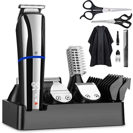 6 en 1 multifonctionnel & Divers cadeauxKit tondeuse cheveux est livre avec 6 accessoires: tondeuse barbe / tondeuse pleine grandeur / tondeuse de prcision / tondeuse design / tondeuse pour le corps / tondeuse pour le nez.galement quip de 5 peignes de guidage.Nous offrons galement nos clients deux ciseaux, peignes et chiffons de haute qualit pour rendre votre utilisation plus pratique et rpondre tous vos besoins quotidiens. .