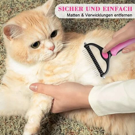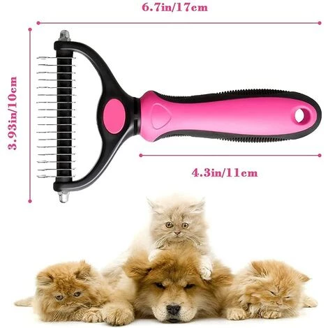 CONCEPTION DOUBLE FACE: Un côté des 9 dents de peigne de la brosse pour animaux de compagnie est utilisé comme râteau démêlant pour les enchevêtrements et les enchevêtrements tenaces. 17 Le côté de la dent du peigne sert de râteau de sous-poil, permettant des résultats plus rapides pour l’amincissement et l’épilation. Le peigne double face aide à éliminer l’excès de poils et à résoudre les problèmes d’enchevêtrement tenaces.
