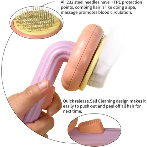 Confortable et sans danger pour les animaux de compagnie : toutes les aiguilles en acier 232 ont des points de protection HTPE. Le peignage des poils est comme un spa, le massage favorise la circulation sanguine. Le peigne à aiguilles incurvé haute densité de 10 mm pénètre dans le bas des poils pour enlever facilement les peluches de la couche intérieure. Brossez les poils morts sans blesser la peau et les racines de vos animaux de compagnie. Les animaux de leurs animaux de compagnie. Les animaux de compagnie. Les animaux de compagnie sont adorés et ils se brosser.