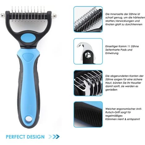 【Élimination efficace】 : En général, les animaux de compagnie ont les poils et le sous-poil lâches, cette brosse chien animaux long l’intérieur des dents est assez tranchant pour couper et peigner les tapis les plus durs, les enchevêtrements et les nœuds en douceur.