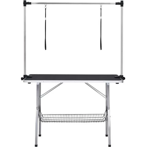 Cette table de toilettage pour animaux de compagnie est soutenue par des pieds en acier, ce qui la rend stable et robuste. Le grand plateau antidérapant crée une surface confortable sur laquelle vos animaux de compagnie peuvent se tenir debout. De plus, le bras de toilettage en acier inoxydable est réglable en hauteur. Ainsi, vous pouvez le régler à une hauteur parfaite en fonction de vous et de la taille de votre animal de compagnie. La table est pliable, ce qui est idéal pour les toiletteurs mobiles et un usage domestique car elle est facile à ranger. Il y a un panier sous la table, qui peut être utilisé pour ranger les articles quotidiens des animaux de compagnie. De plus, les coins arrondis évitent les blessures.