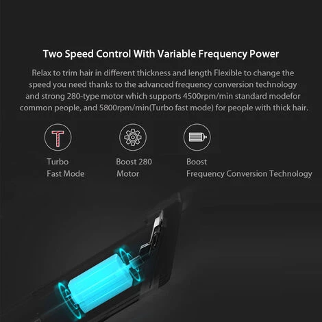 | Xiaomi ENCHEN Boost Tondeuse électrique Chargeur USB Tondeuse à deux vitesses Nano céramique Cutter cheveux charge rapide rechargeable de type C Port pour adultes Enfants Note: Ce produit est un produit de marque de la chaîne écologique Xiaomi, il n’y a pas de traces Xiaomi sur les produits, s’il vous plaît noter qu’il. Traits: – longueur déterminée d’un bouton de 0,7 à 21 mm et le support de réglage d’un seul bouton. – tête de coupe Nano-céramique avec bruit ultra faible, lisse expérience sûre et rapide coupe. – Deux contrôle de vitesse avec une puissance à fréquence variable, prise en charge 4500rpm / min mode standard pour les gens ordinaires, et 5800rpm / min (Turbo mode rapide) pour les personnes avec les cheveux épais. – ESM Soutien système intelligent pour garantir un fonctionnement à grande vitesse, la prévention de la sécurité des cheveux coincé et la charge, la protection de la couche beaucoup, une grande efficacité. – apophyses arrondies en forme de R, une meilleure sécurité et le confort. – 600mAh Grande capacité de la batterie, connecteur de type C universel largement appliqué à Powerbank, ordinateur portable, prise USB et d’autres dispositifs communs. – tête de coupe amovible et lavable – Livré avec indicateur de batterie Spécification: Marque: Xiaomi ENCHEN Modèle: Boost Matériel: ABS Couleur: Noir / Blanc Puissance: 5W Tension: 5 V Temps de charge: environ 120 minutes Batterie: 600mAh Port USB: Type-C Poids: 142g A propos de Taille: environ 43 x 164 mm Poids du paquet: Approx.250g / 3,88 oz Taille de l’emballage: env. 18 * 6 * 6cm / 6,69 * 3,15 * 0.59in Remarque: * Le temps d’utilisation peut varier. * Couleur d’objet peut montrer une légère aberration en raison de lumière différente de prise de vue et l’affichage du moniteur. Le forfait comprend: 1 * USB Tondeuse à cheveux 1 * Câble USB |