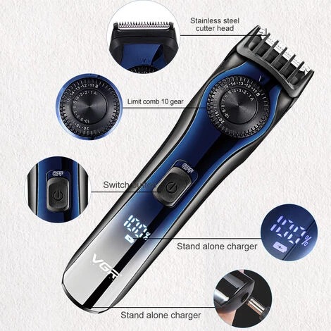Nom du produit: Tondeuse à cheveux pour hommes Charge USB 5W Ensemble de tondeuse à cheveux multifonctionnelle avec affichage numérique LCD Rasoir tondeuse électrique 20 fichiers